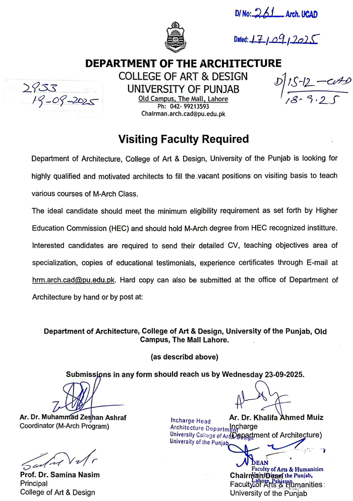 Careers Visiting Faculty Required (Department of Architecture) Job Type: Visiting Faculty Required (Department of Architecture)No. of Posts: Department: Department of Architecture Requirement Criteria Closing Date 23-09-2025 Contact Back to Careers